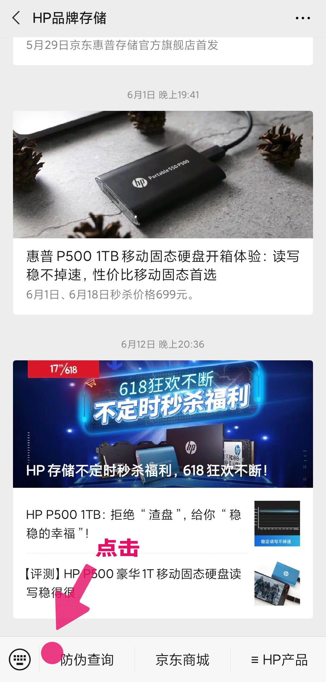 關注“HP品牌存儲”微信公眾號,點擊菜單欄“防偽查詢”,即可進入HP存儲產(chǎn)品防偽查詢小程序。