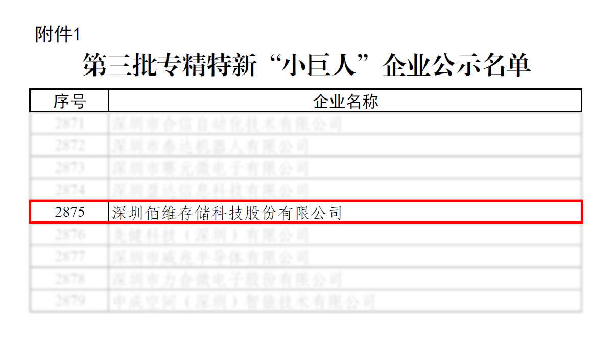 近日,第三批專精特新“小巨人”企業(yè)名單公示,佰維存儲科技股份有限公司(下稱佰維存儲)名列其中,成為國內(nèi)半導(dǎo)體存儲器行業(yè)中首批入選專精特新“小巨人”的企業(yè)。