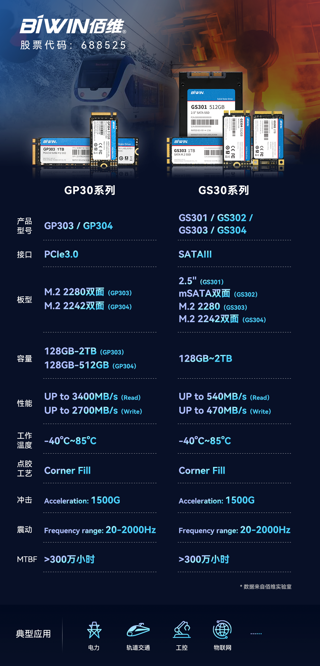 近日,佰維針對(duì)極端溫度等工作環(huán)境推出多款工業(yè)級(jí)寬溫SSD產(chǎn)品,包括GP303、GP304、GS301、GS302、GS303、GS304等。系列產(chǎn)品采用國(guó)產(chǎn)品牌3D NAND晶圓和主控,同時(shí)依托公司存儲(chǔ)解決方案研發(fā)稟賦下的介質(zhì)特性研究及篩選、固件算法開(kāi)發(fā)、硬件設(shè)計(jì)、先進(jìn)制造等能力,使得產(chǎn)品具備高性能、高穩(wěn)定、高可靠和更安全等優(yōu)勢(shì),廣泛適用于電力、物聯(lián)網(wǎng)、5G、智能制造、軌道交通、工業(yè)控制等領(lǐng)域。