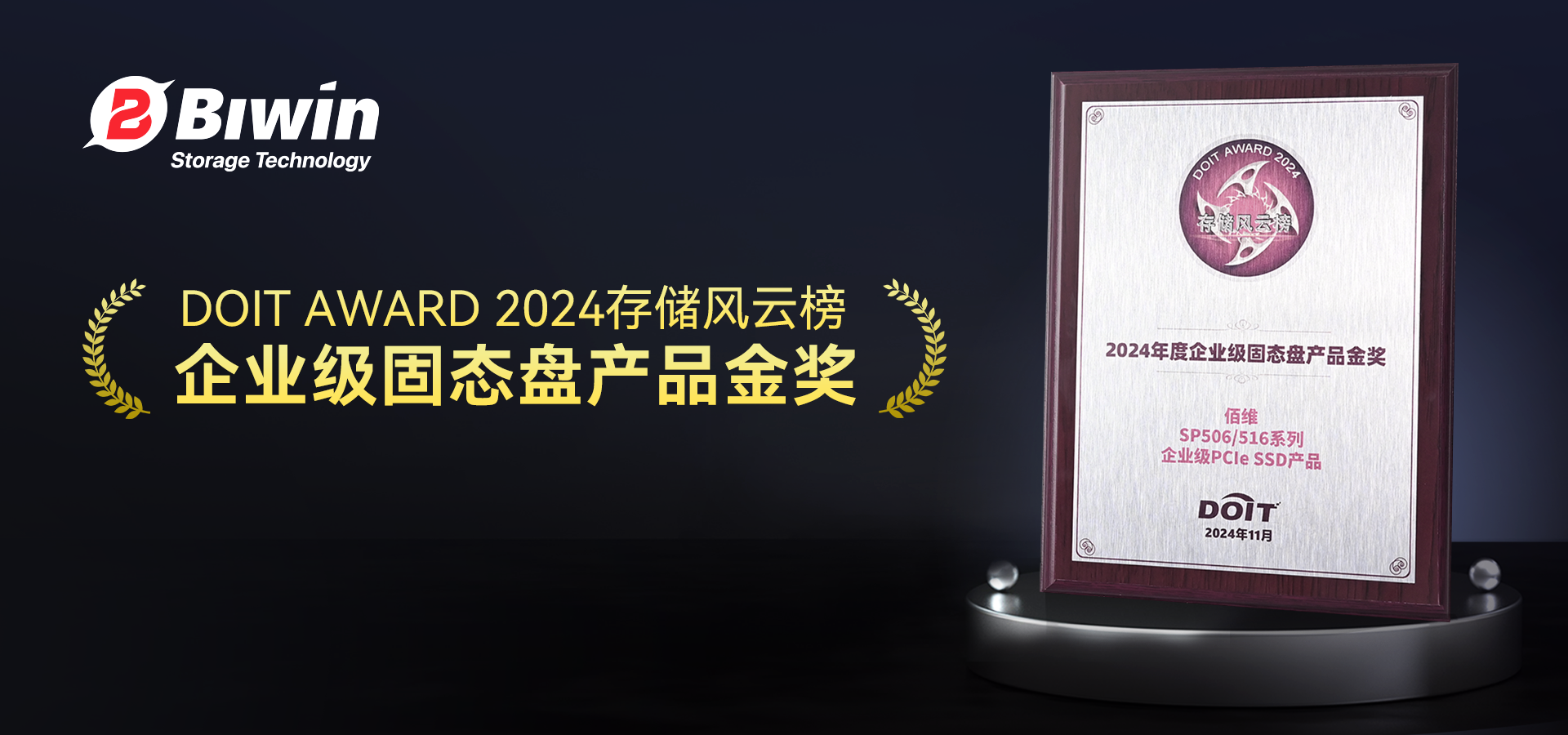 在會議同期揭曉的DOIT AWARD 2024存儲風(fēng)云榜上,匯集存儲產(chǎn)業(yè)具有突破性和代表性的優(yōu)秀產(chǎn)品與解決方案。佰維SP506/516系列企業(yè)級PCle5.0 SSD產(chǎn)品榮獲“2024年度企業(yè)級固態(tài)盤產(chǎn)品金獎”。
